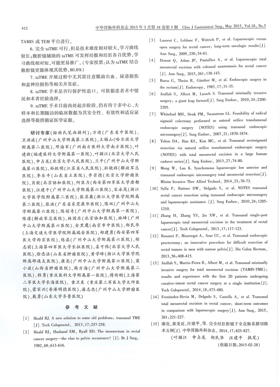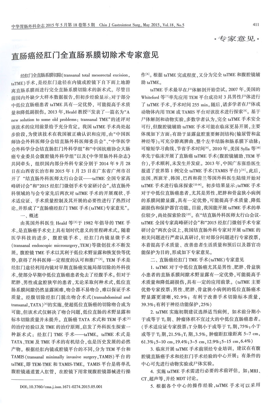 直腸癌經(jīng)肛門全直腸系膜切除術(shù)專家意見