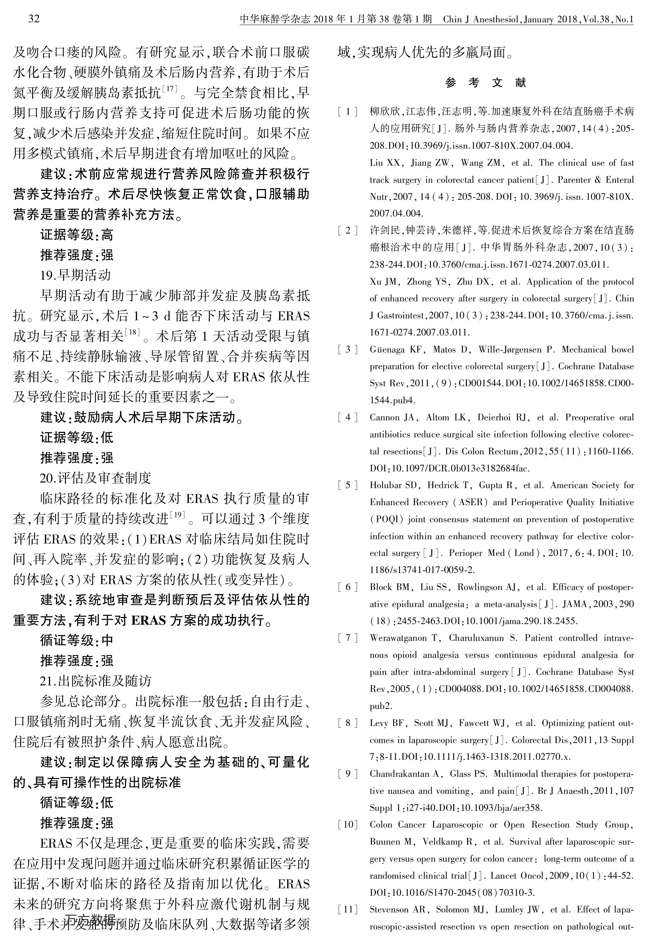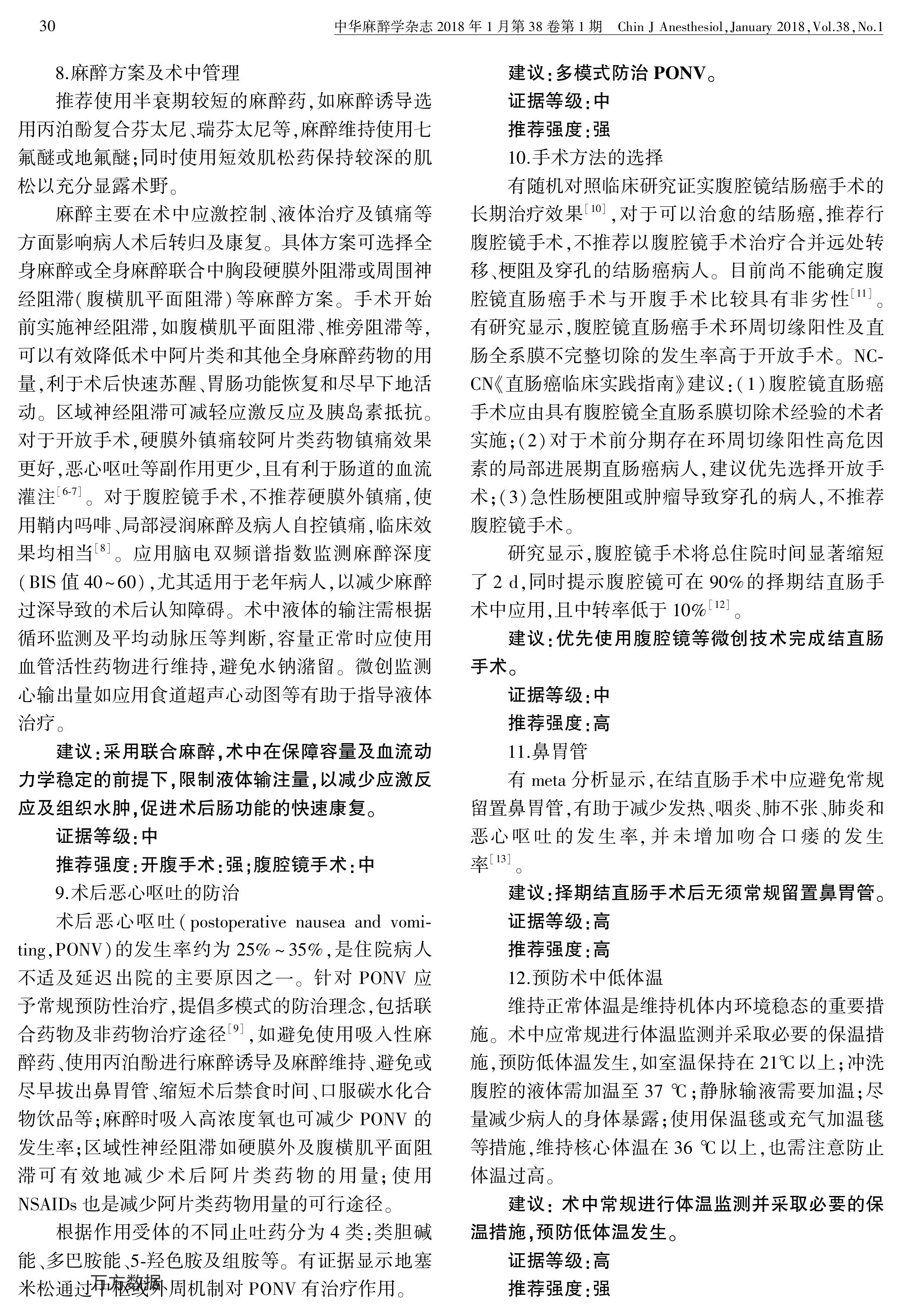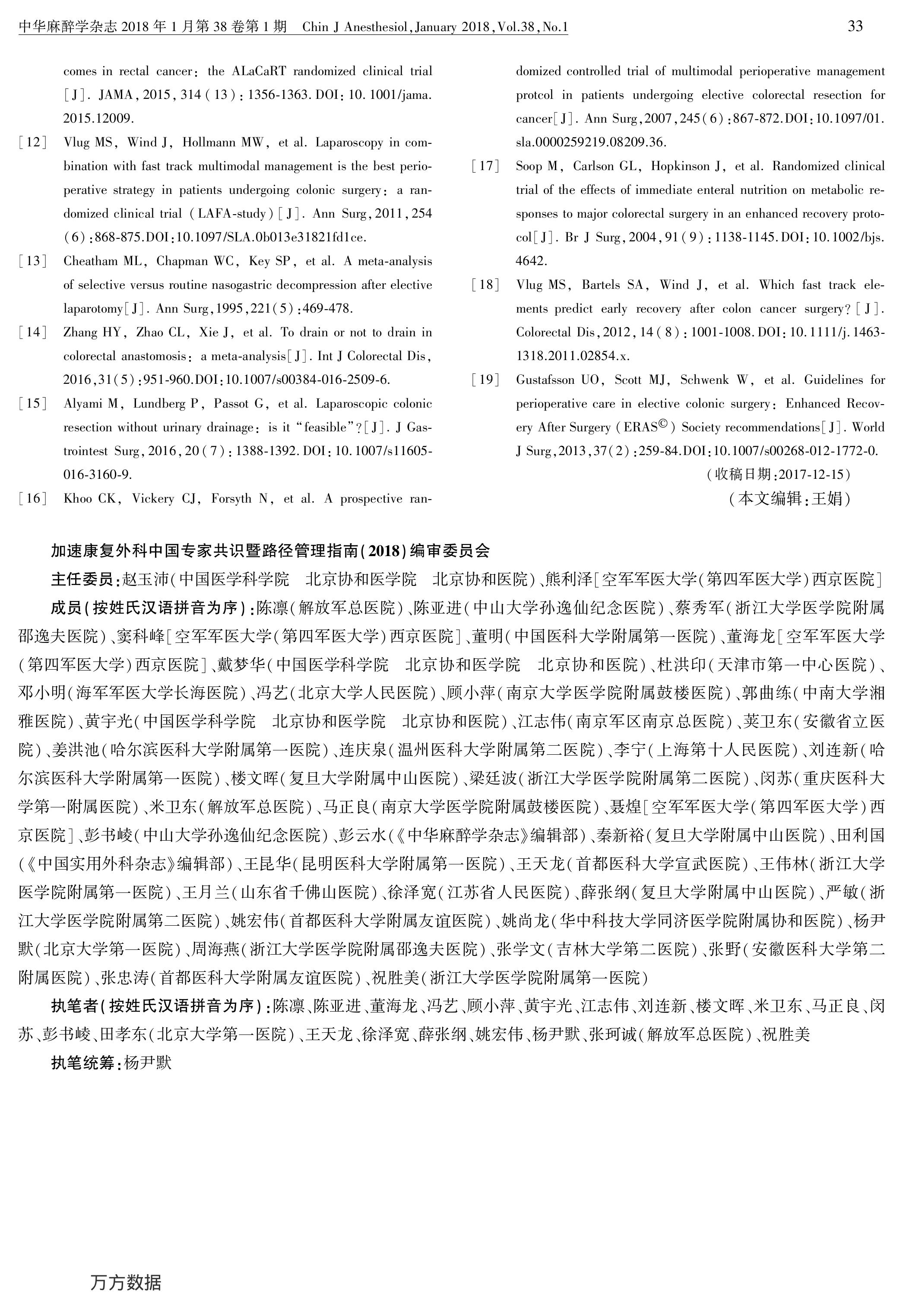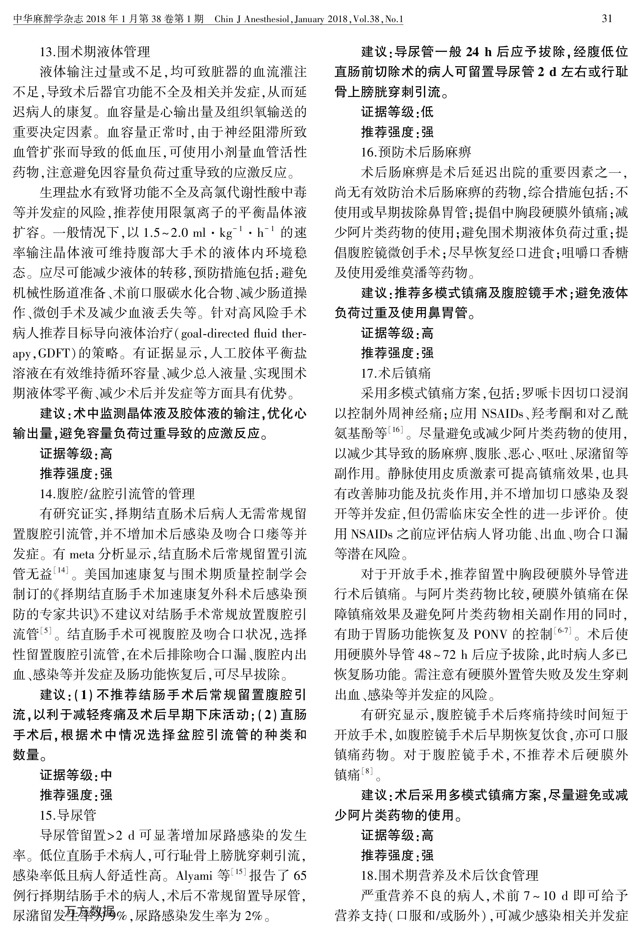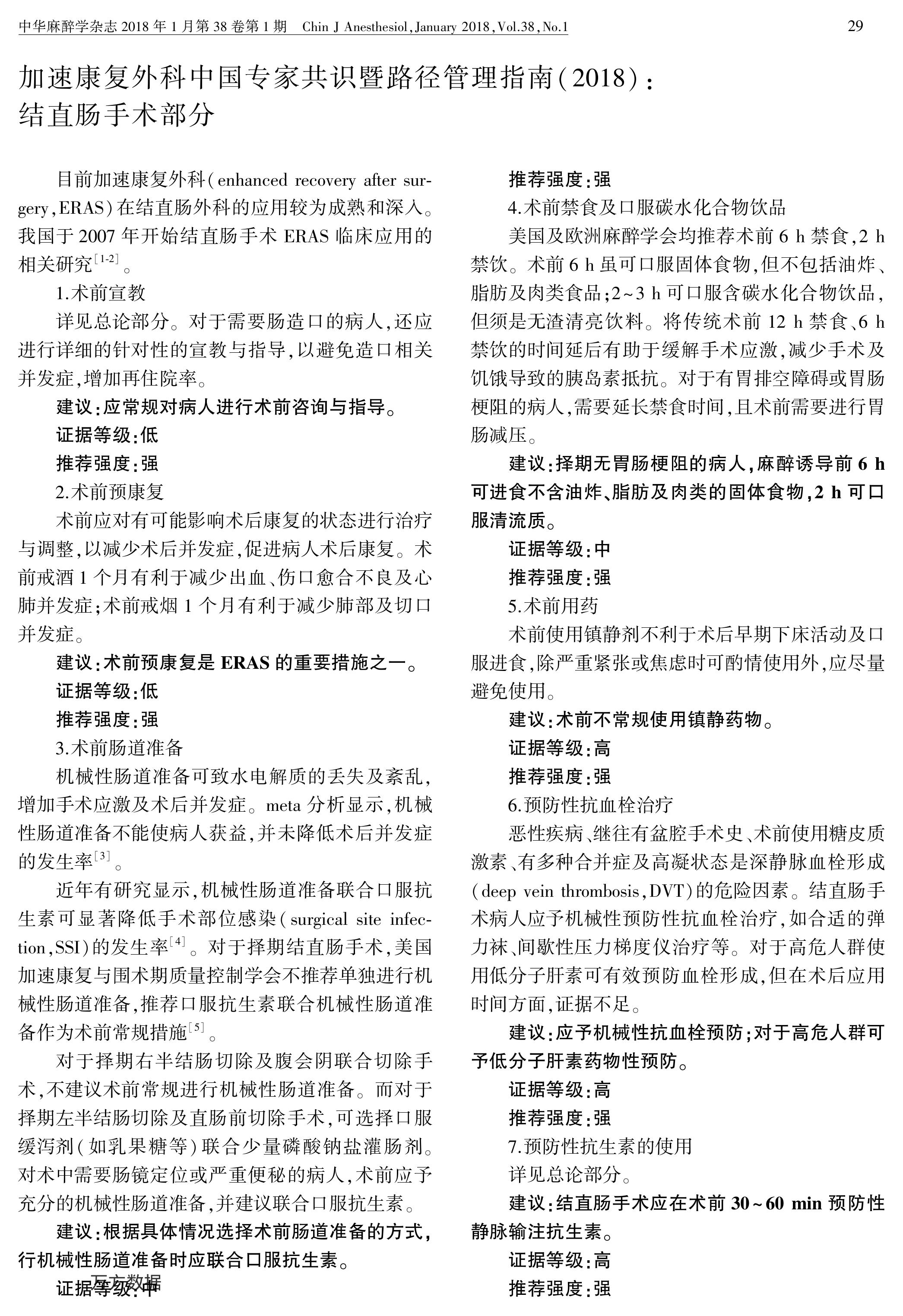 加速康復(fù)外科中國專家共識暨路徑管理指南(2018):結(jié)直腸手術(shù)部分