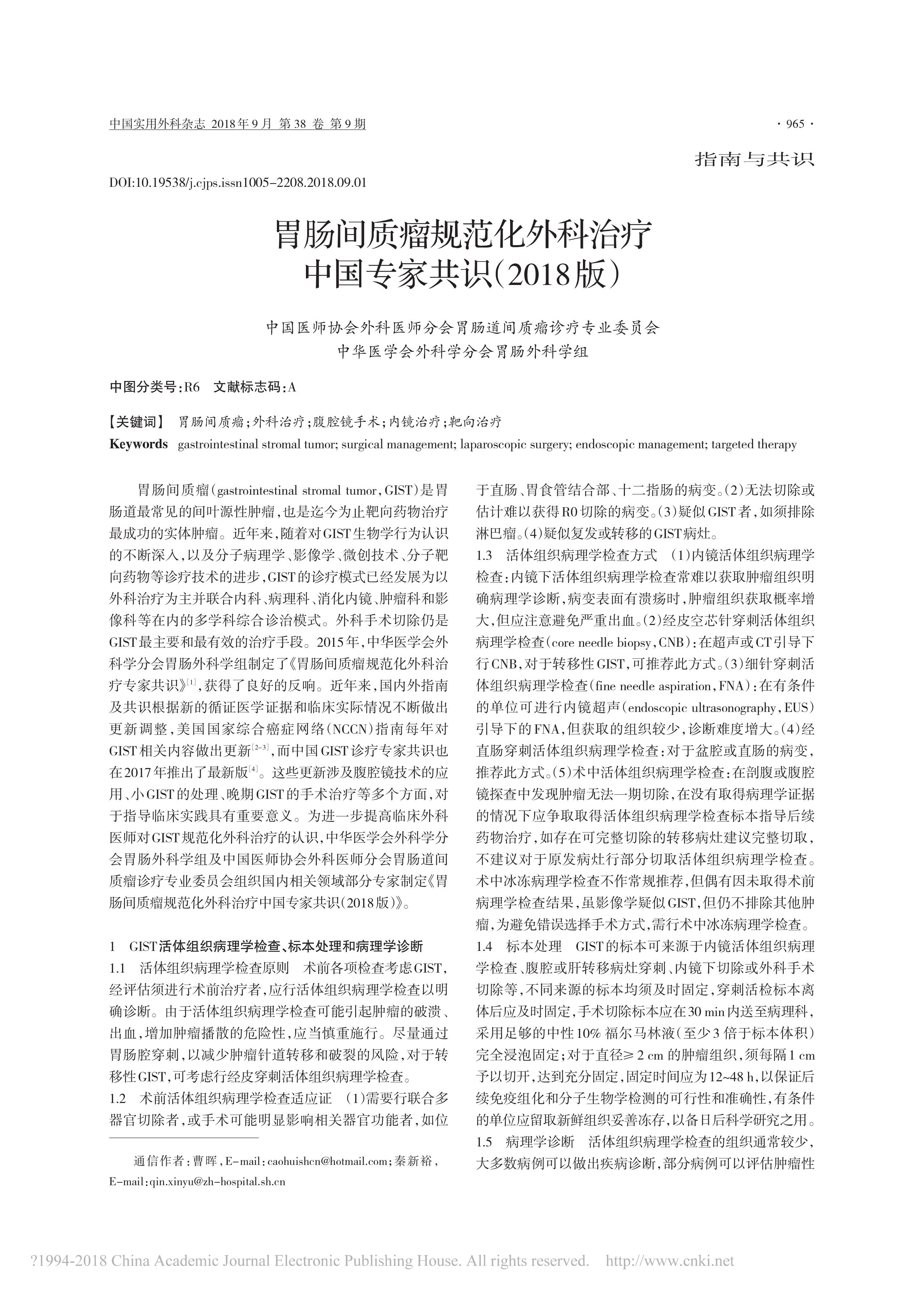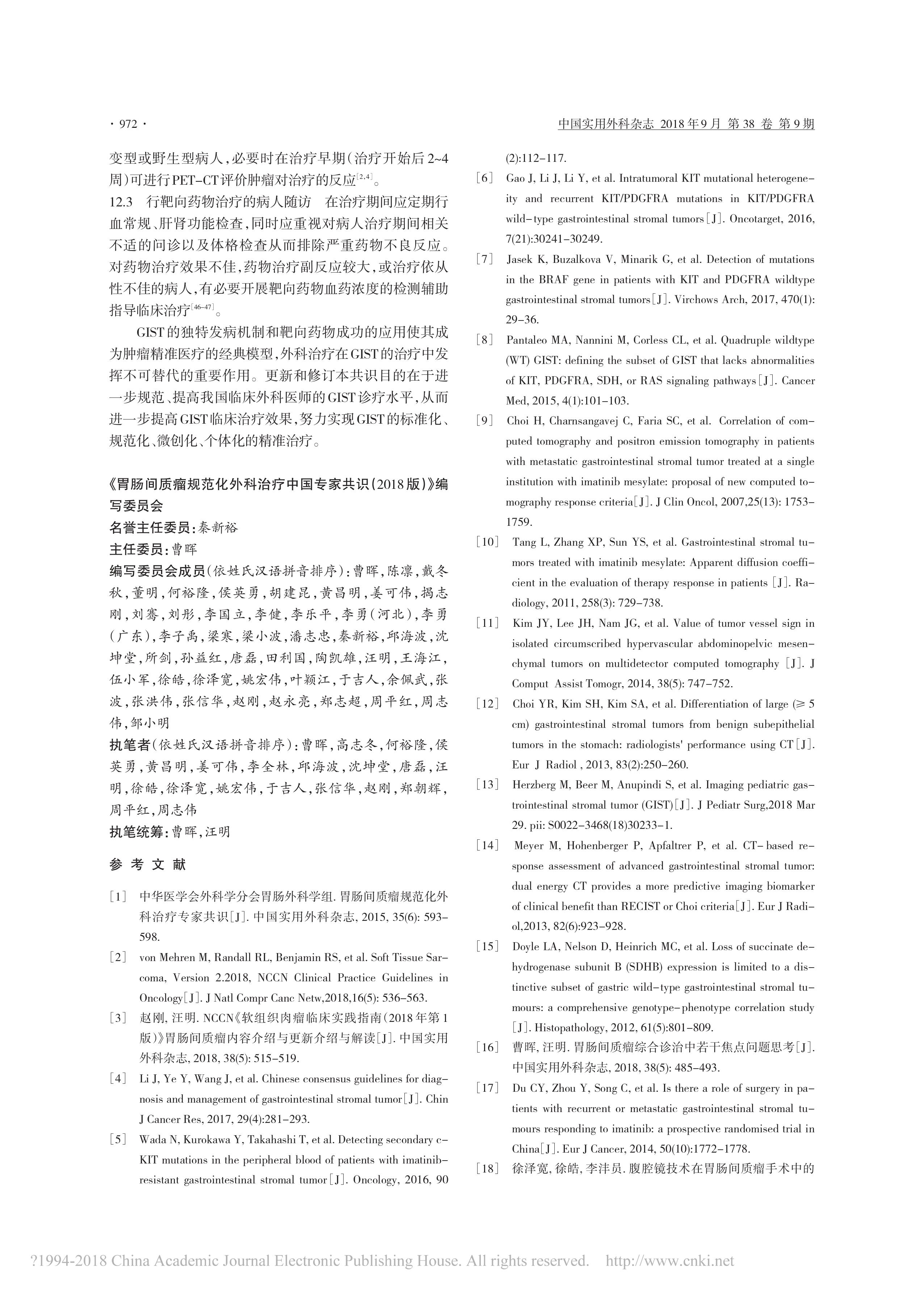 胃腸間質瘤規(guī)范化外科治療中國專家共識(2018 版)